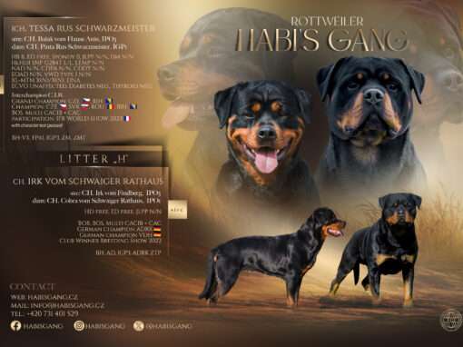 Vrh „H“ je na světě! S obrovskou radostí oznamujeme, že v naší chovatelské stanici Habi's gang se narodilo 10 nádherných štěňat z opakovaného a osvědčeného spojení mezi výjimečnými šampiony – Tessou Rus Schwarzmeister a Irkem vom Schwaiger Rathaus! Přivítejte s námi...